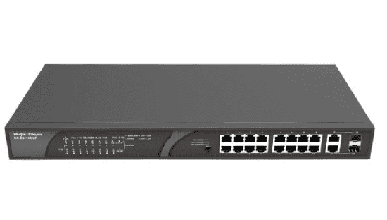 16-Port 100Mbps + 2 Gigabit RJ45/SFP combo Ports, 16 of the ports support PoE/PoE+ power supply. Max PoE power budget is 120W, unmanaged switch
